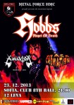 Започвайки с ново парче, след това групата заби добре познатите ни класики от двата си албума (’88 & ‘95). Намирайки студийните им записи за малко еднообразни, бях поразен какво многообразие от парчета и звучене могат да предложат днес HOBBS’ ANGEL OF DEATH. По-бързи, по-бавни, с по-трашърски риф и с по-радикално звучене, групата докосна пълноценно всяко метално къстче от душите ни. Мош-пита и стейдж-дайвинга демонстрираха настроението на феновете. В горещата обстановка реквизитното обърнато разпятие получи щети. Видимо смутен от това, фронтмена отбеляза, че това се случва за първи път!!! Но енергията от сцената не секна.