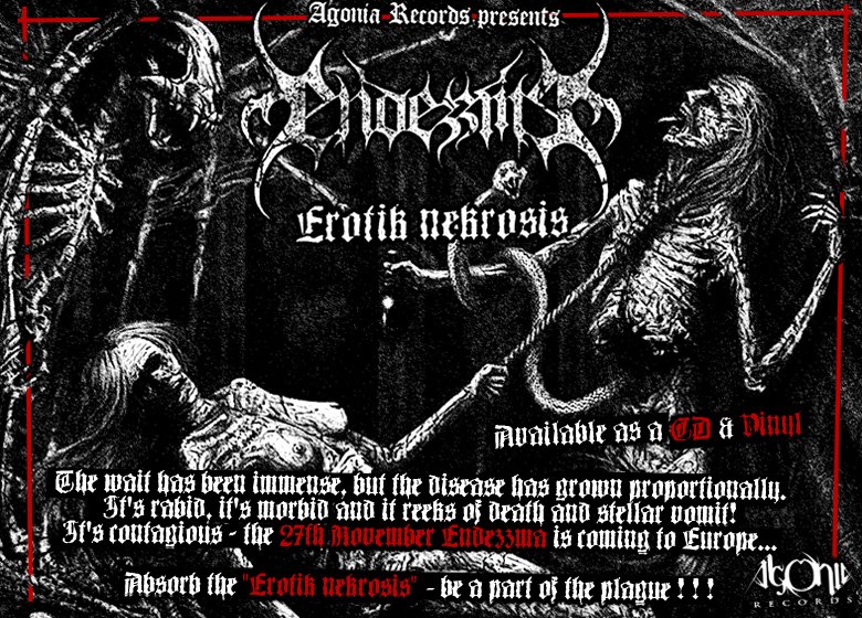 Неотдавна ENDEZZMA представиха дебютния си дългосвирещ албум “Erotik Nekrosis”. Той съдържа седем парчета и е наследник на мини диска на групата “Alone” (2008). Издател е Agonia Records, които пуснаха изданието на 28 ноември в Европа и на 5 февруари в САЩ. “Erotik Nekrosis” е събрал следните музиканти: Morten Shax – вокали, Trondr Nefas (URGEHAL, BEASTCRAFT, VULTURE LORD) и Mattis Malphas (BEASTCRAFT) на китарите, Sregroth (URGEHAL, ÅSMEGIN) – бас и Carl Balam (NATTEFROST, ASTAROTH, ex-INFERNAL) – барабани. Записите са направени в Slaughterhaus Studio в Осло и са ръководени от холивудския продуцент Robert Blix. Артуъркът е дело на казахстанския художник Alexandr Balinets.